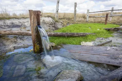 Groundwater is located below the surface as water seeps into the ground and moves through various layers of soil and rock until it reaches a layer it cannot pass through. From there, it begins to pool in the spaces between rocks and grows in size until it forms an aquifer.