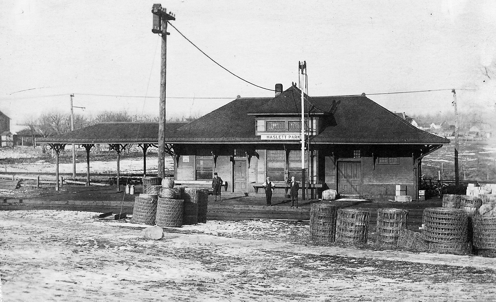 The farming community in Haslett experienced huge growth for farmers. The tracks were a logical gathering point for farmers to ship their harvest and animals to markets. A small railroad station was soon joined by a post office and general stores. The Babbitt family constructed a store at the location. The development of plank roads and railroads played a major role in the development of the area.